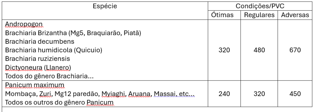 - Exemplo Capim-Mombaça: PVC 300.